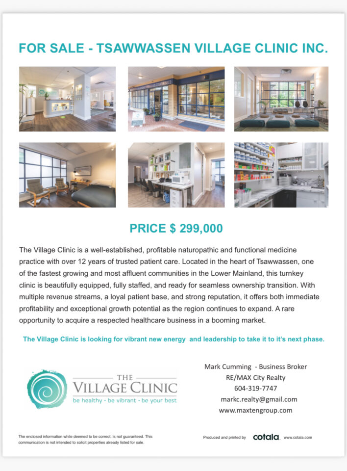 After years of growth and service, The Village Clinic Inc. is now available for sale. This is a rare chance to acquire an established, respected, and fully operational clinic with strong community roots and brand recognition.