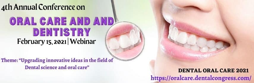 Dental Oral Care 2021 welcomes attendees, presenters and exhibitors from all over the world. We are delighted to invite you all to attend for the “4th Annual Conference on Oral Care and Dentistry” which is going to be held during February 15, 2021. where the organizing committee is gearing up for an exciting and informative Dental conference program including plenary lectures, symposia, workshops on a variety of topics, poster presentations and various programs for participants from all over the world. We invite you to join us at the Dental Oral Care 2021, where you will be sure to have a meaningful experience with scholars from around the world.