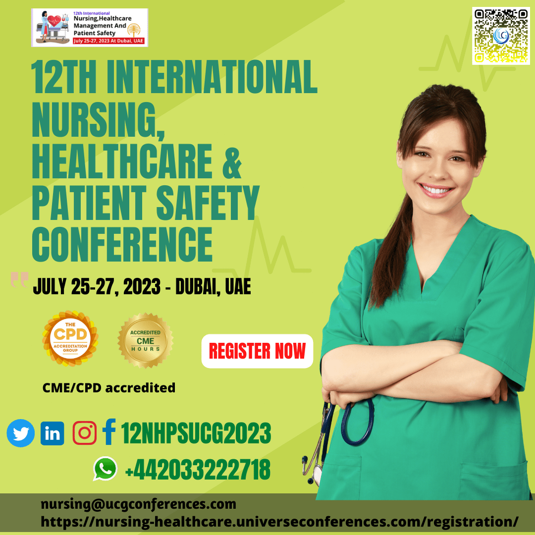 Dear colleagues and friends, We cordially invite you to the 12th International Nursing, Healthcare and Patient Safety Conference, which will be held in Dubai, UAE, from July 25-27, 2023. The theme of the conference “Future of Nursing, Healthcare and Patient Safety”. Keynote lectures and workshops are part of the Nursing, Healthcare and Patient Safety Conference. (more...)