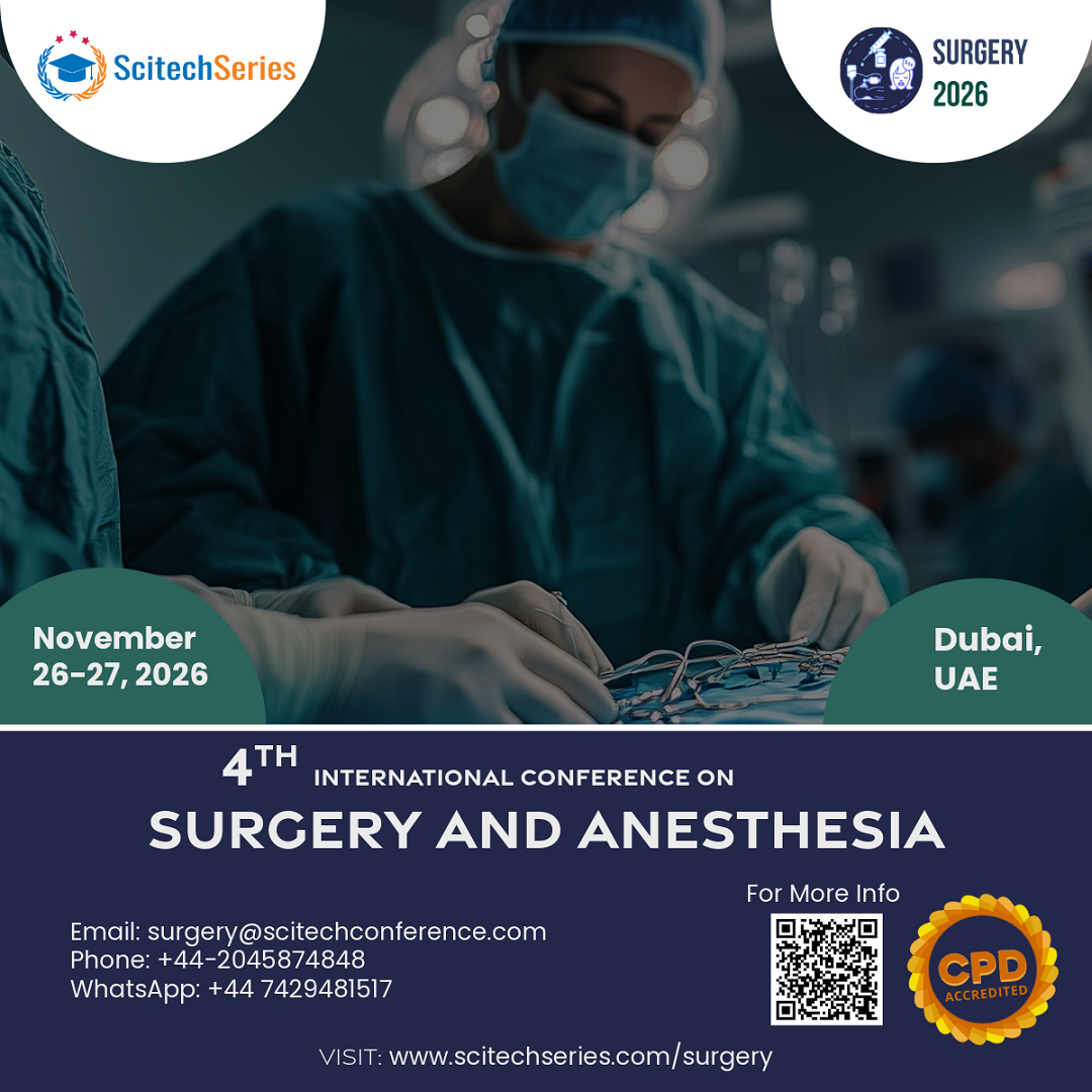 We are delighted to extend a cordial invitation to the “4th International Conference on Surgery and Anesthesia” (Surgery 2026), scheduled as a Hybrid Event during November 26-27, 2026 in Dubai, UAE. This conference is focusing on the theme “Explore multidisciplinary approaches, advancements in surgery and anesthesia.” Surgery 2026 represents elevating surgery and anesthesia to new (more...)